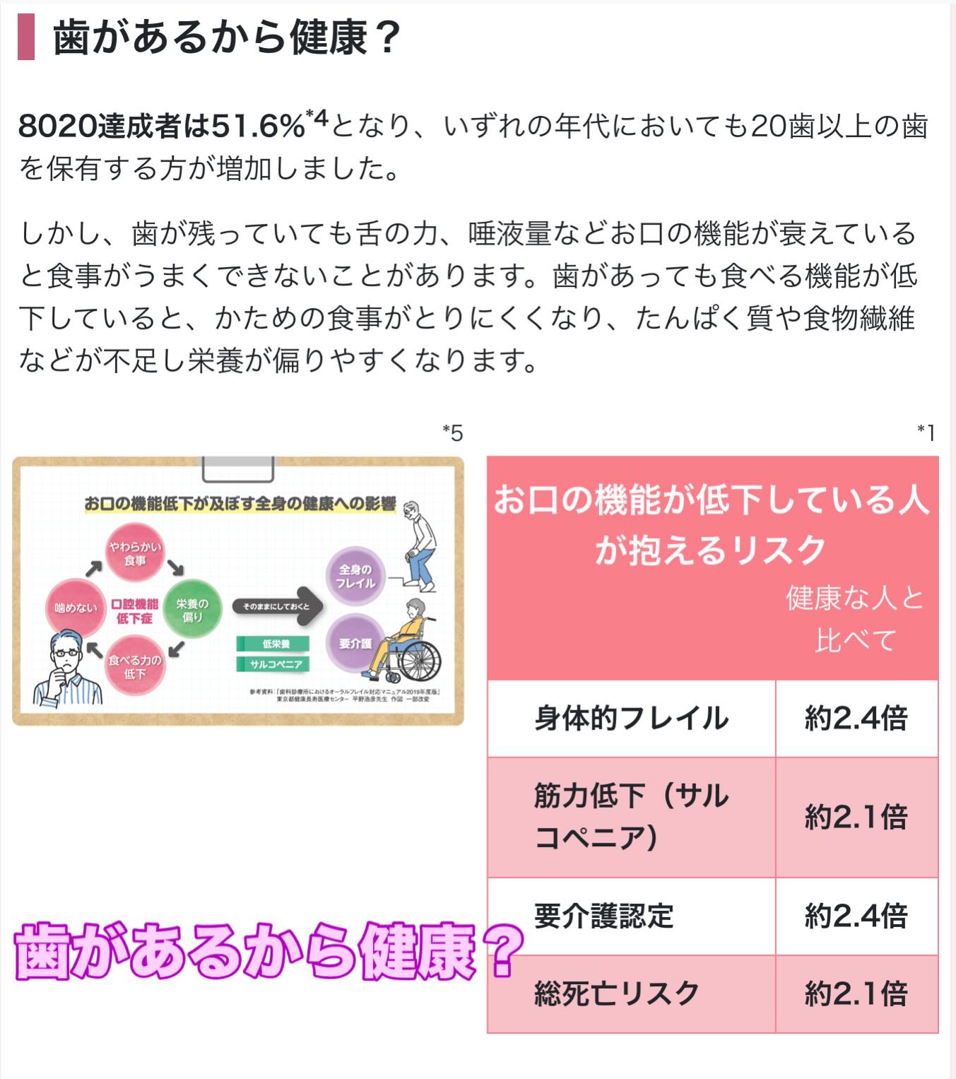こんにちは♪北都歯科クリニックです🎀 みなさんはオーラルフレイルという状態、口腔機能低下症という病気をご存知ですか? オーラルフレイルとは わずかなむせや食べこぼし、滑舌の低下といった口腔機能が低下した状態を示します